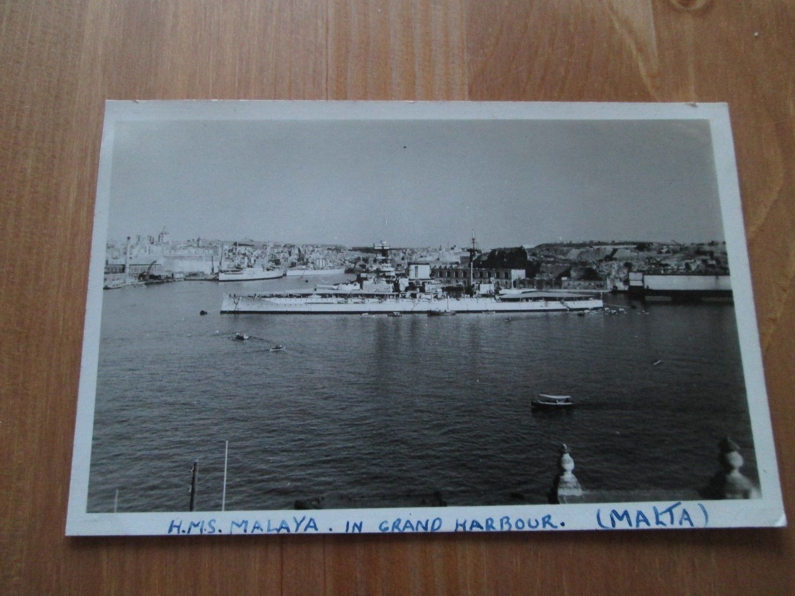H.M.S MALAYA IN GRAND HARBOUR MALTA