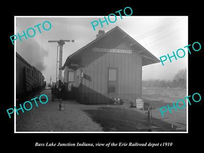 OLD LARGE HISTORIC PHOTO OF BASS LAKE JUNCT INDIANA ERIE RAILROAD DEPOT c1910 1