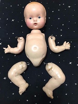 Title (ebay affiliate link): Antique Composition Baby Doll Blonde Blue Eye Body Parts Pieces Head Arms Legs