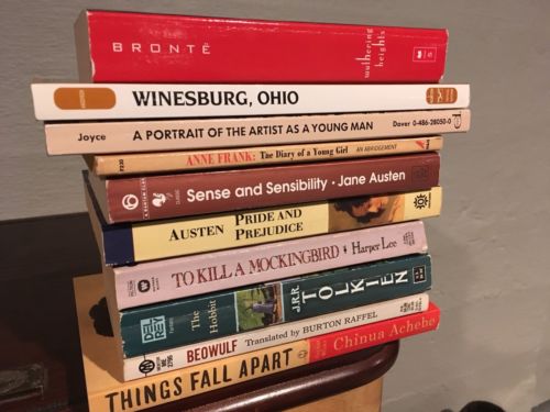 Title (ebay affiliate link): Classic Book Lot 10 Things Fall Apart Hobbit Jane Austin Bronte Anne Frank Joyce