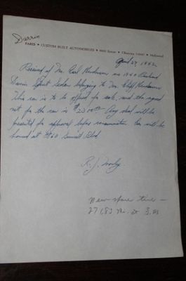 1940 Packard Darrin Sport Sedan Orig. Letter of Receipt
