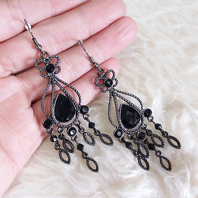 Title (ebay affiliate link): Vintage Womens Bohemian Antique Black Beads Chandelier Dangle Drop Hook Earrings