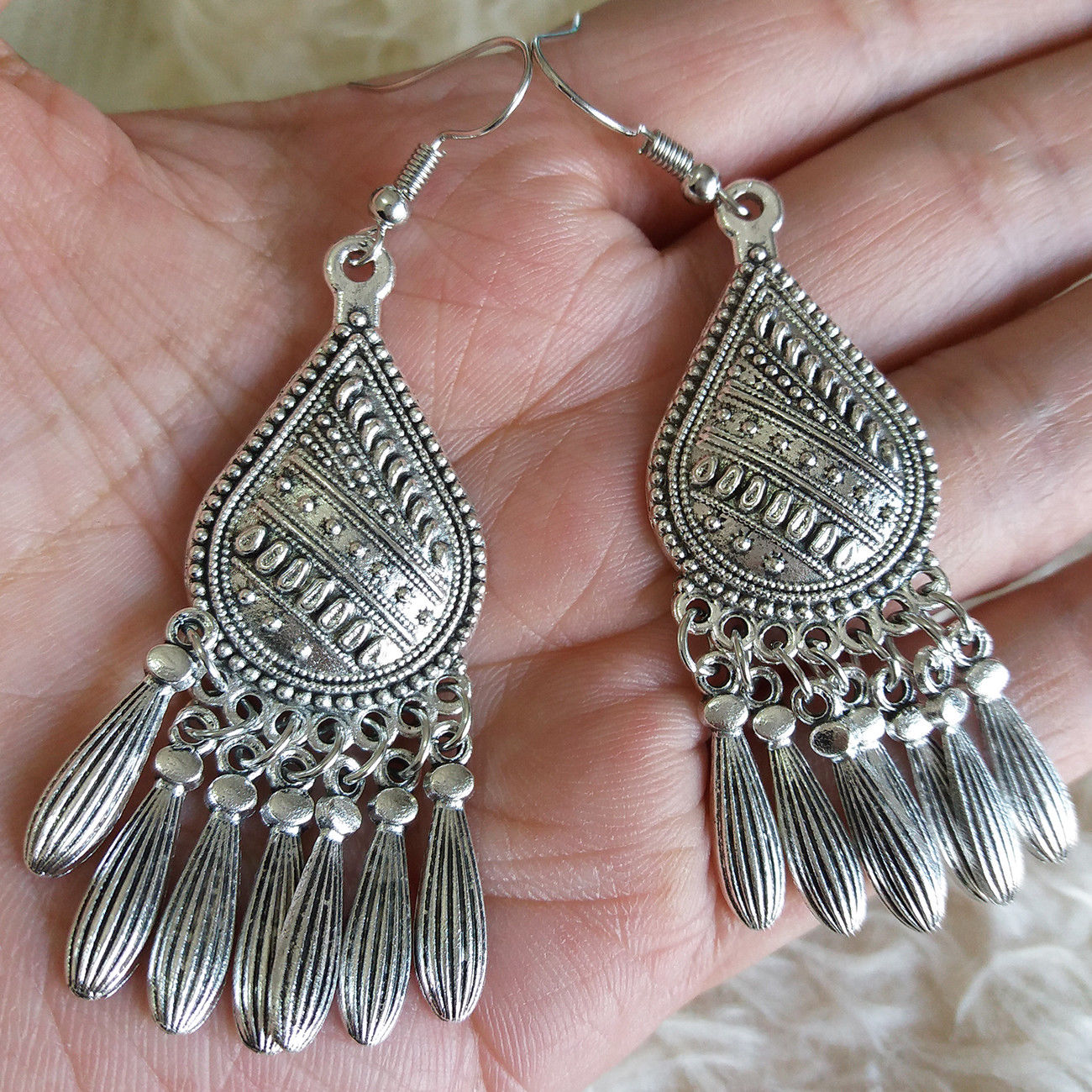 Title (ebay affiliate link): NEW Vintage Womens Boho Antique-Tone Patterned Charm Dangle Drop Hook Earrings