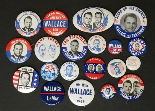 Title (ebay affiliate link): Lot of (20) 1968 George Wallace Presidential Campaign Pinback Buttons