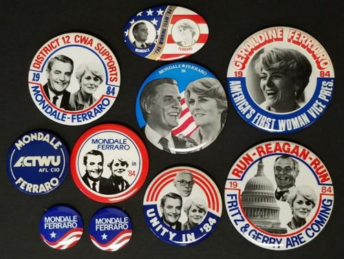 Title (ebay affiliate link): Lot of 10 Mondale/Ferraro 1984 Presidential Campaign Pinback Buttons - Lg. Sizes