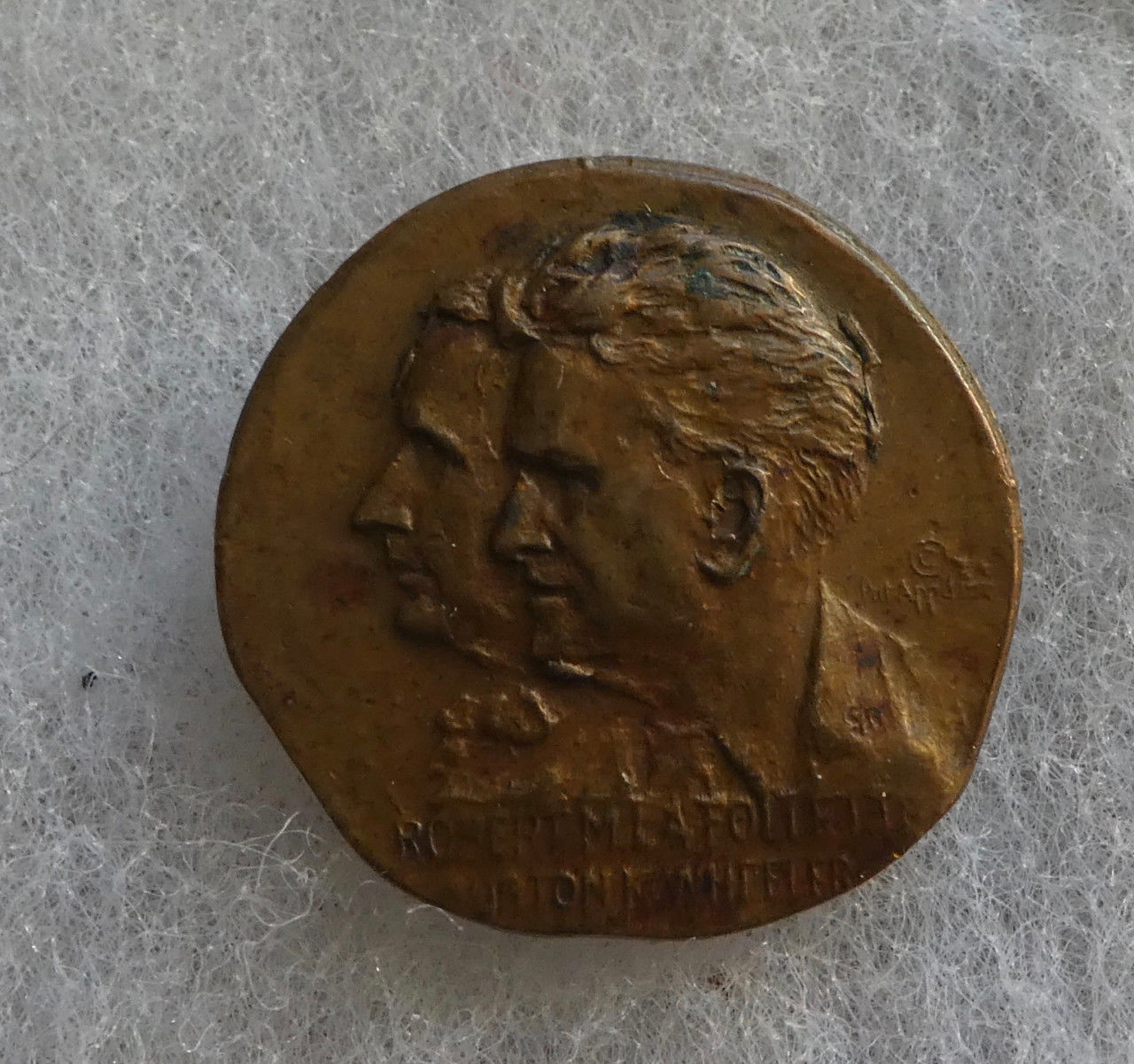 1924 ROBERT LA FOLLETTE-BURTON K WHEELER (PROGRESSIVE PARTY) BRASS CAMPAIGN PIN