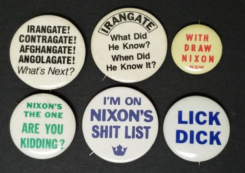 Title (ebay affiliate link): 6 Vintage Anti-Nixon Presidential Campaign Pinback Buttons