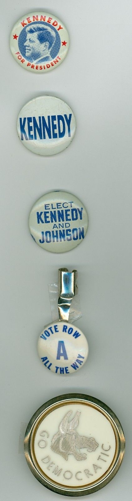 3 Vintage President Kennedy Political Pinback Buttons 1 Tie Clip &1 Pen Cap