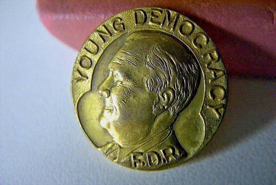 FDR ''YOUNG DEMOCRACY'' BRONZE CAMPAIGN PIN