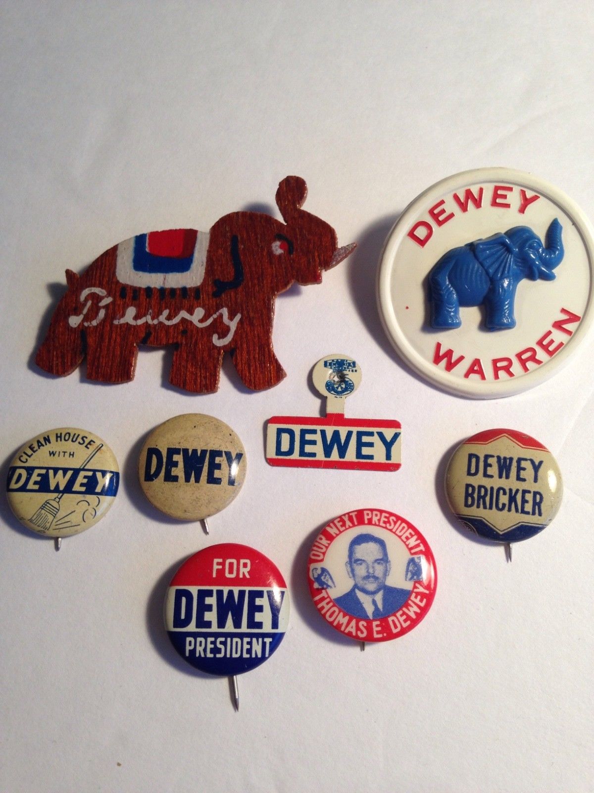 Title (ebay affiliate link): (8) Vintage Thomas E. Dewy/Warren/Bricker Presidential Pins (plastic-wood) Nice