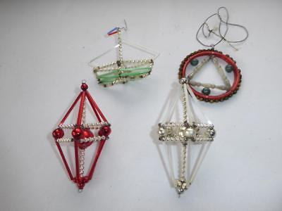 4 ANTIQUE CZECH GLASS BEAD & MERCURY GLASS FIGURAL CHRISTMAS ORNAMENTS