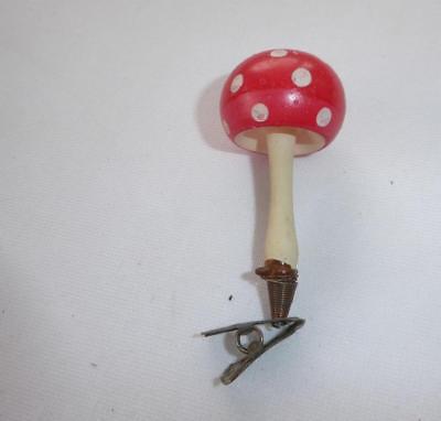 ANTIQUE BLOWN GLASS MUSHROOM FIGURAL CLIP ON CHRISTMAS TREE ORNAMENT
