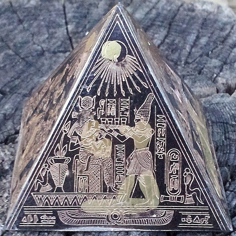 Title (ebay affiliate link): Antique Bronze Egyptian Metal Pyramid~Etched Brass/Copper~Ancient Egypt King Tut
