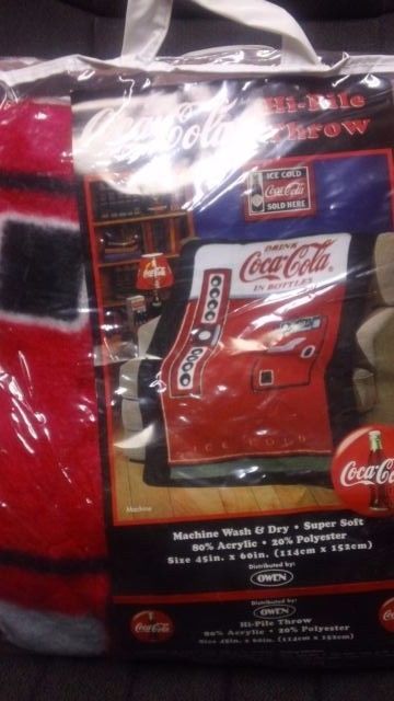 Title (ebay affiliate link): Vtg Coca Cola Throw Blanket Vending Machine Soda 1999 45" x 60" New Fleece Owen