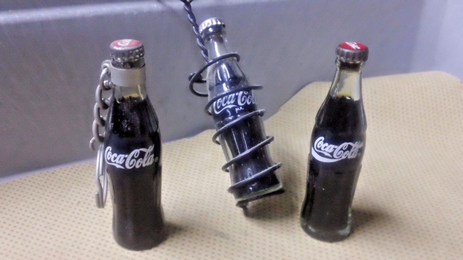 Title (ebay affiliate link): VTG Coca Cola Mini Real Soda Bottles Key Chain Magnet Wall Art Heart Metal Glass