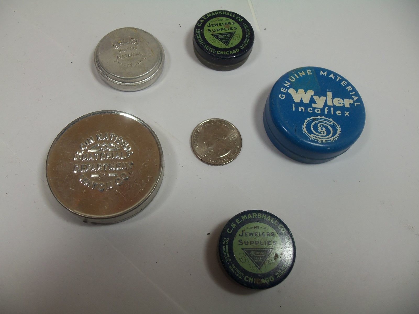 lot vintage tin containers watch parts empty pocket assorted GRUEN ELGIN RARE