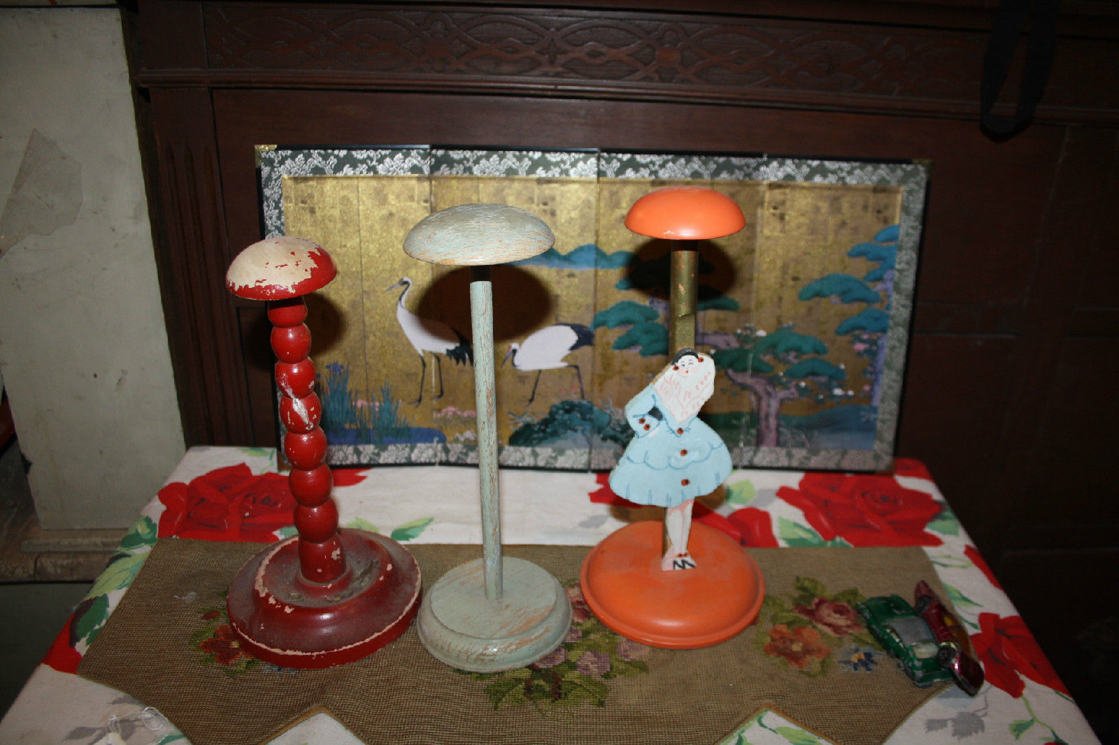 Title (ebay affiliate link): 3 VTG HAT STANDS MID-CENTURY HOLDER DISPLAY CLOSET STORE OLD PAINT WOOD WOODEN