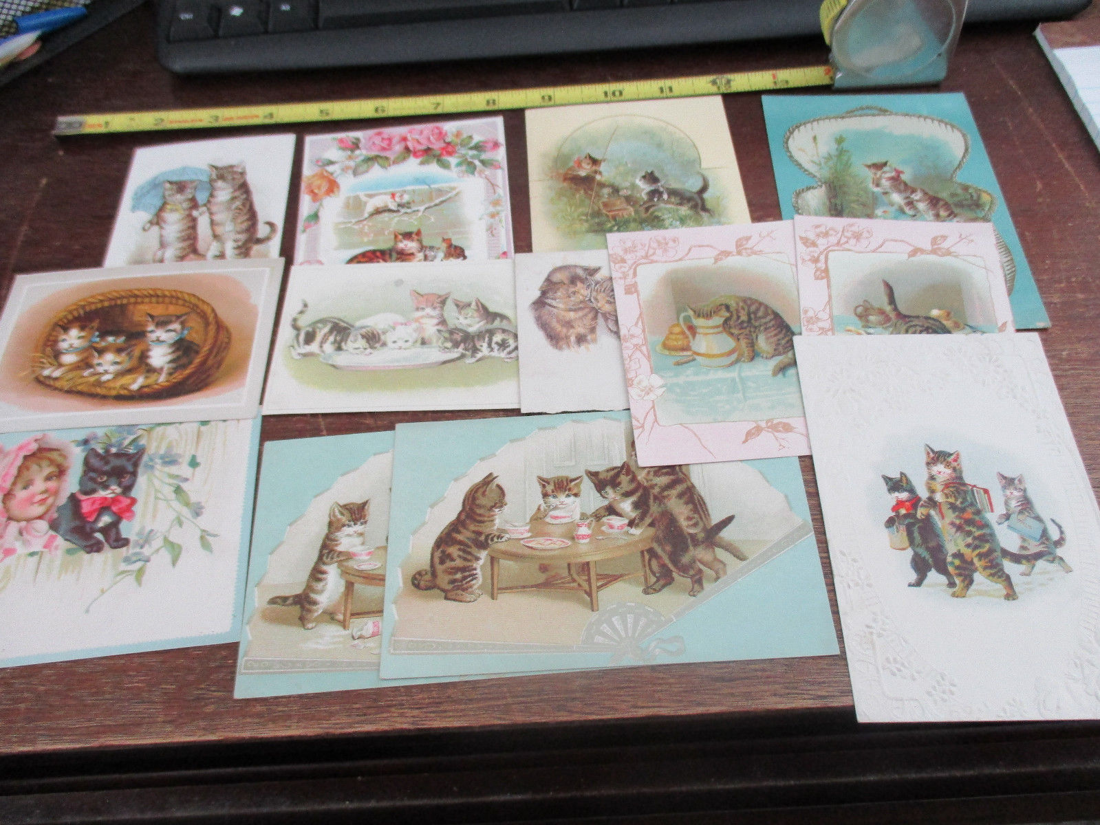 VICTORIAN TRADE CARD ERA GREETING CARD LOT CATS (13)
