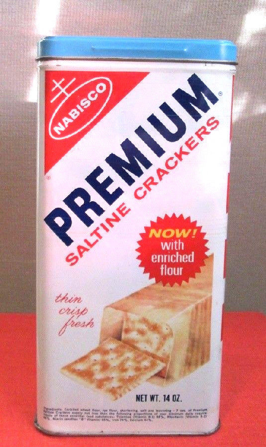 Title (ebay affiliate link): 1969 VINTAGE PREMIUM SALTINE CRACKERS TIN-NO BAR CODE NICE!
