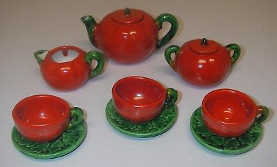 Title (ebay affiliate link): Antique Doll Dishes Tea Set Porcelain Occupied Japan Mini Tomato Red Dollhouse