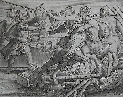 Title (ebay affiliate link): 1738 MYTHOLOGY ENGRAVING OVID BATTLE OF CENTAURS LAPITHS, WEDDING HIPPODAMEIA