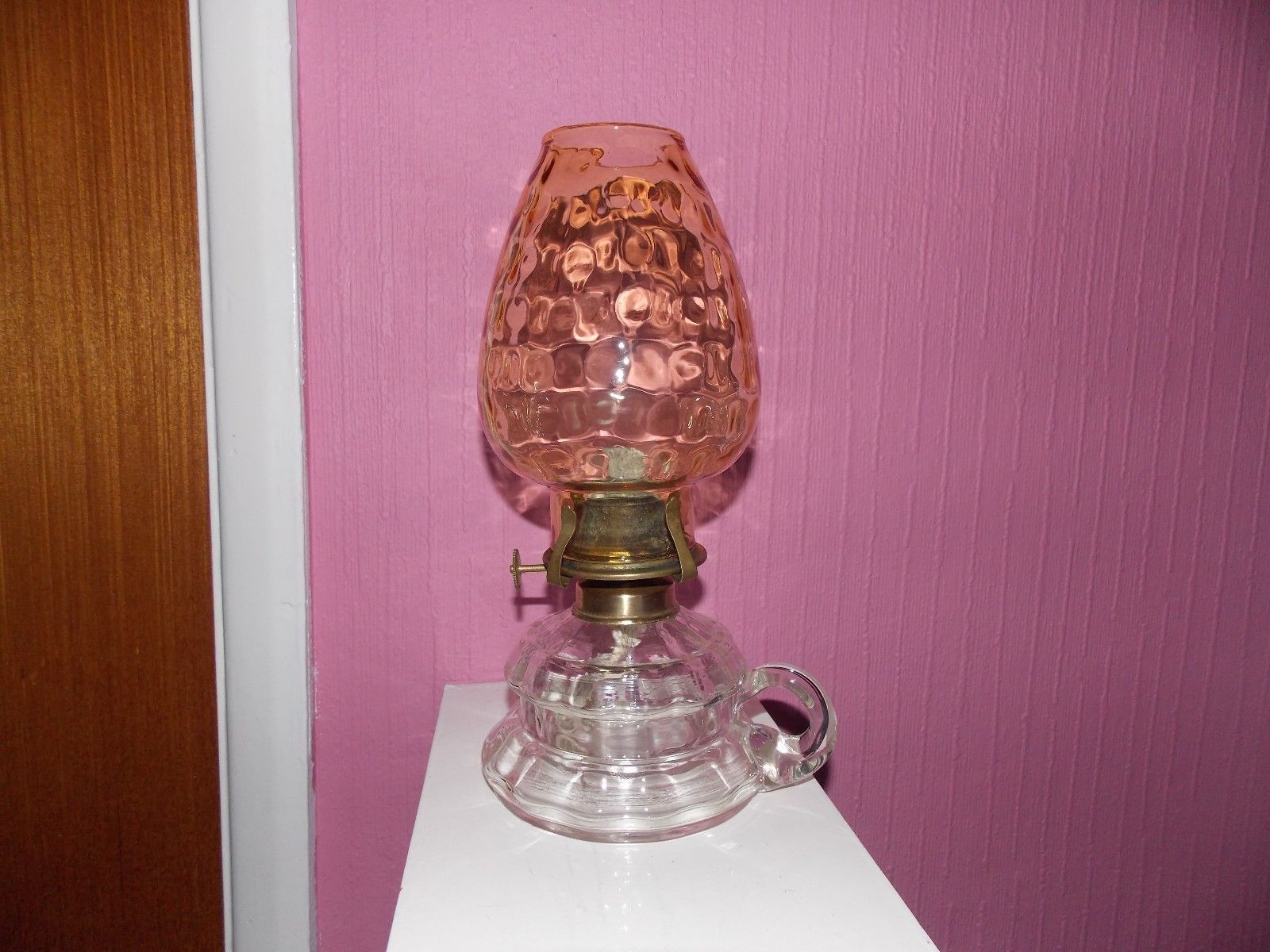 Title (ebay affiliate link): CLEAR GLASS OIL LAMP WITH LIGHT BROWN TULIP SHADE