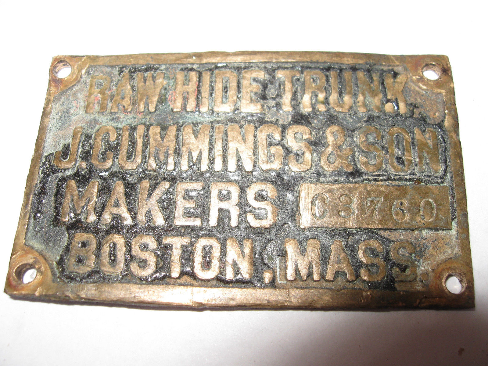 ANTIQUE VTG STEAMER TRUNK BRASS LABEL