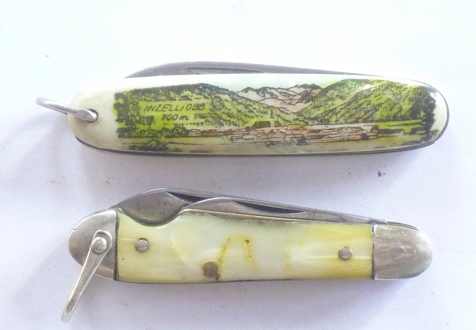 Lot of 2 small vintage key chain knives, a 1 blade German Souvnir, a easy open k