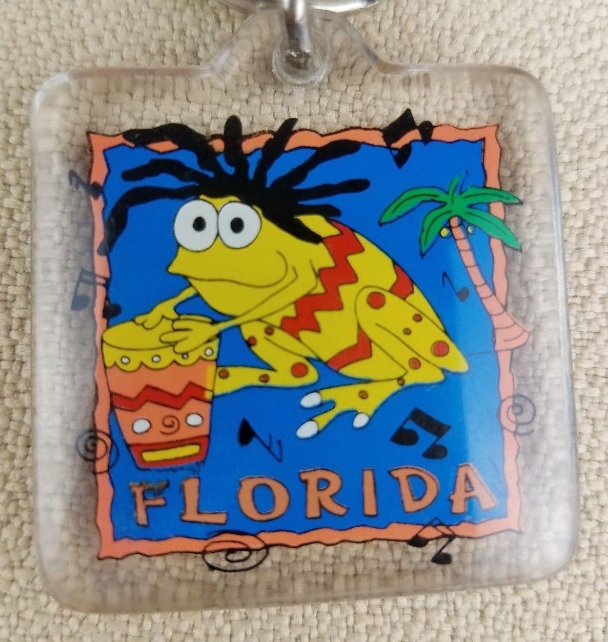 Vintage Frog Playing Bongos Florida Music Reggae Keychain Plastic Memorabilia