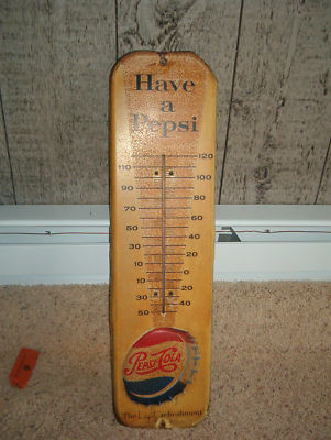 1950'S PEPSI-COLA THERMOMETER,BOTTLE CAP SIGN
