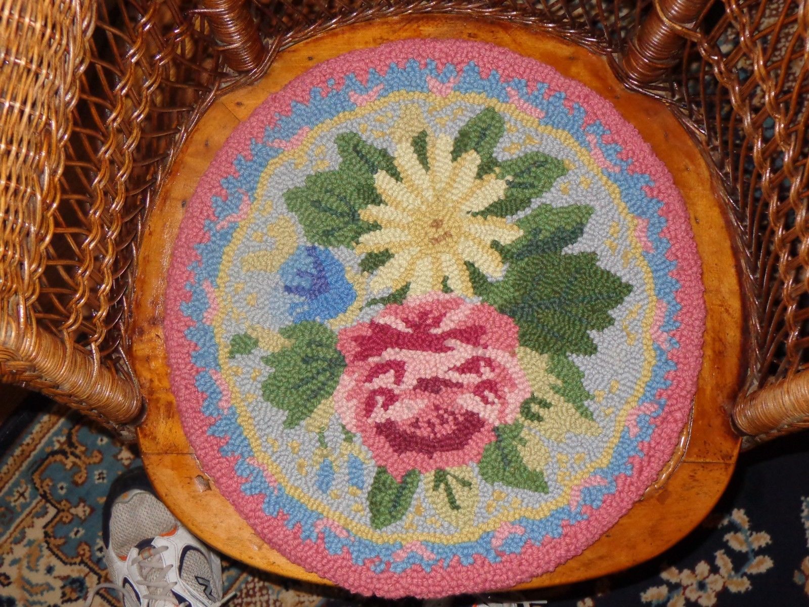 Title (ebay affiliate link): Vintage Hand-Hooked Chair Round Seat Pad (16" Diameter; Wool Backing)