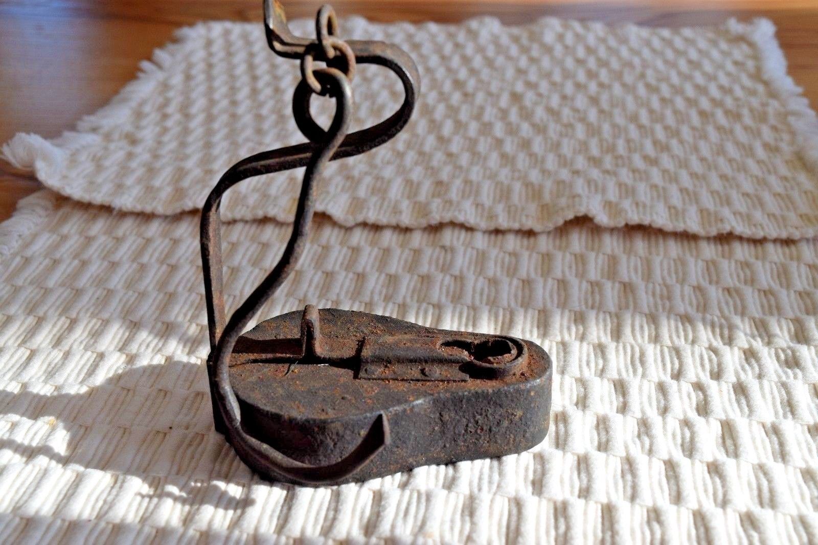 Title (ebay affiliate link): Antique Primitive 1800s Iron Whale Oil Grease Fat Phoebe Betty Lamp Iron Hook