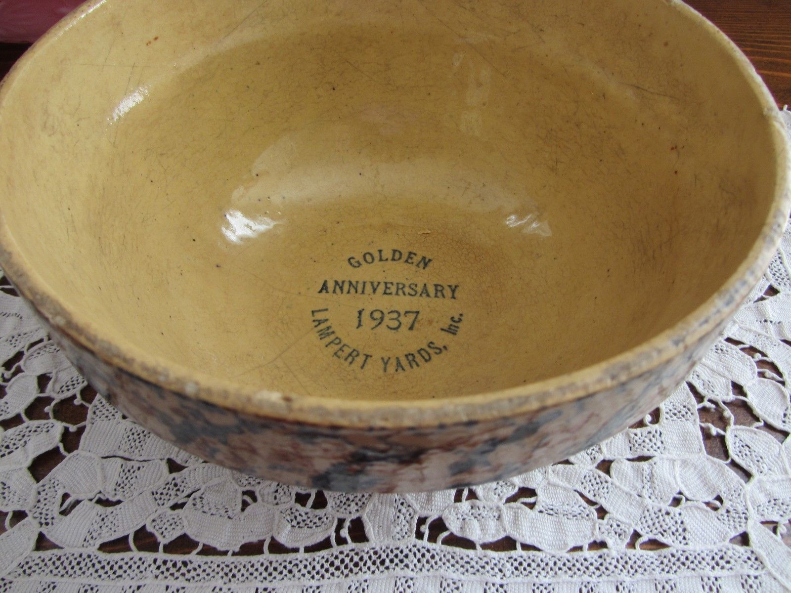 Title (ebay affiliate link): ANTIQUE RED WING SPONGEWARE / YELLOW WARE POTTERY BOWL W/ ADVERTISING ca 1937