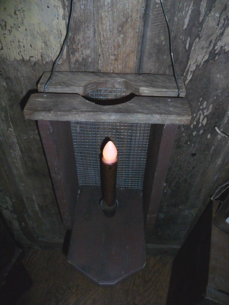 Title (ebay affiliate link): Primitive Wooden Lantern, Early Look Homestead Candle Light, Rustic Old Wood