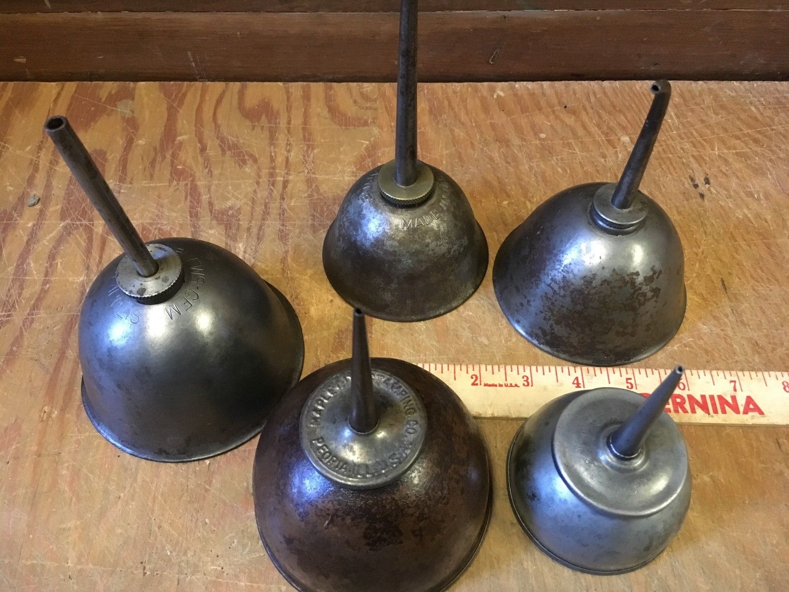 Title (ebay affiliate link): 5 Antique & Old Vintage Engine Oilers / Oil Cans ~ Rustic Industrial Tools Decor