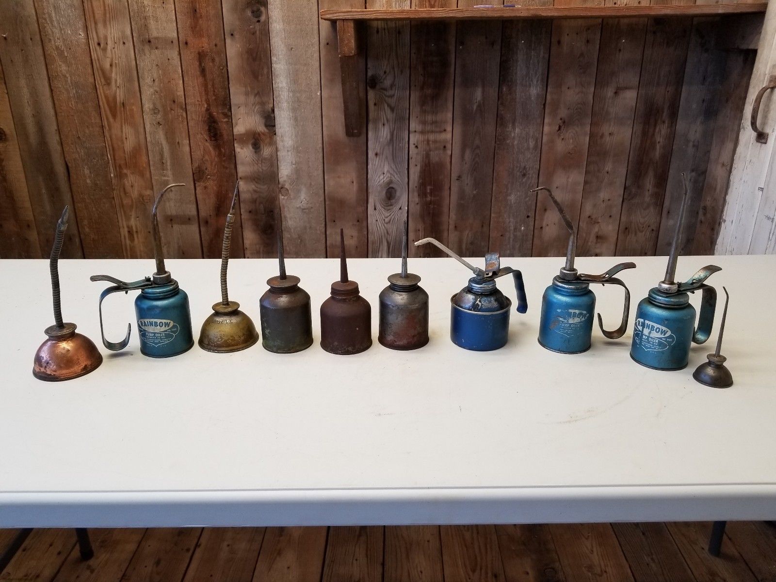 10 Antique & Old Vintage Engine Oilers Oil Cans ~ Rustic Industrial Tools Decor