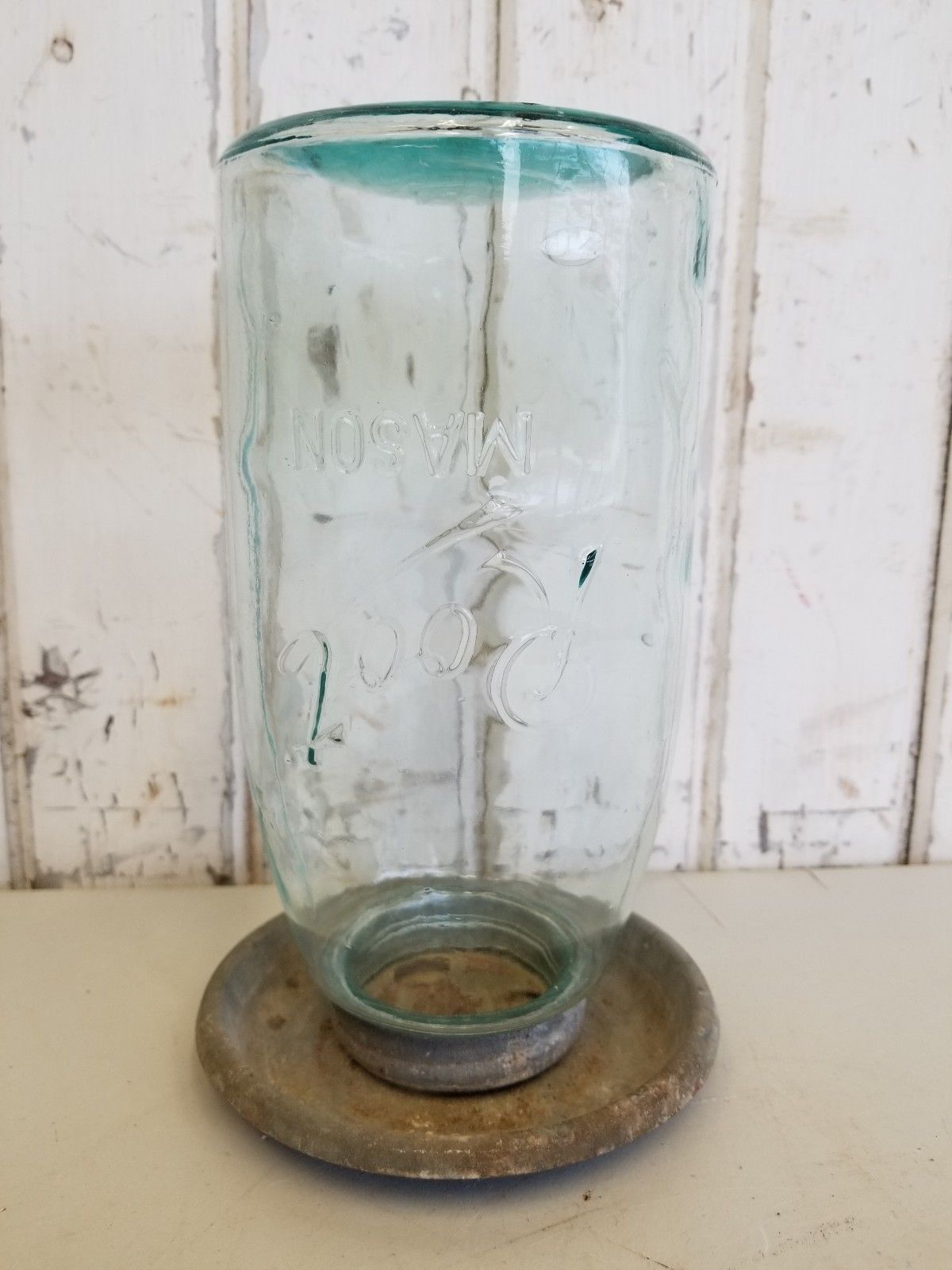 Title (ebay affiliate link): Antique 1/2 Gal Root Mason Jar / Primitive Chicken Waterer ~ Vintage Farm Decor