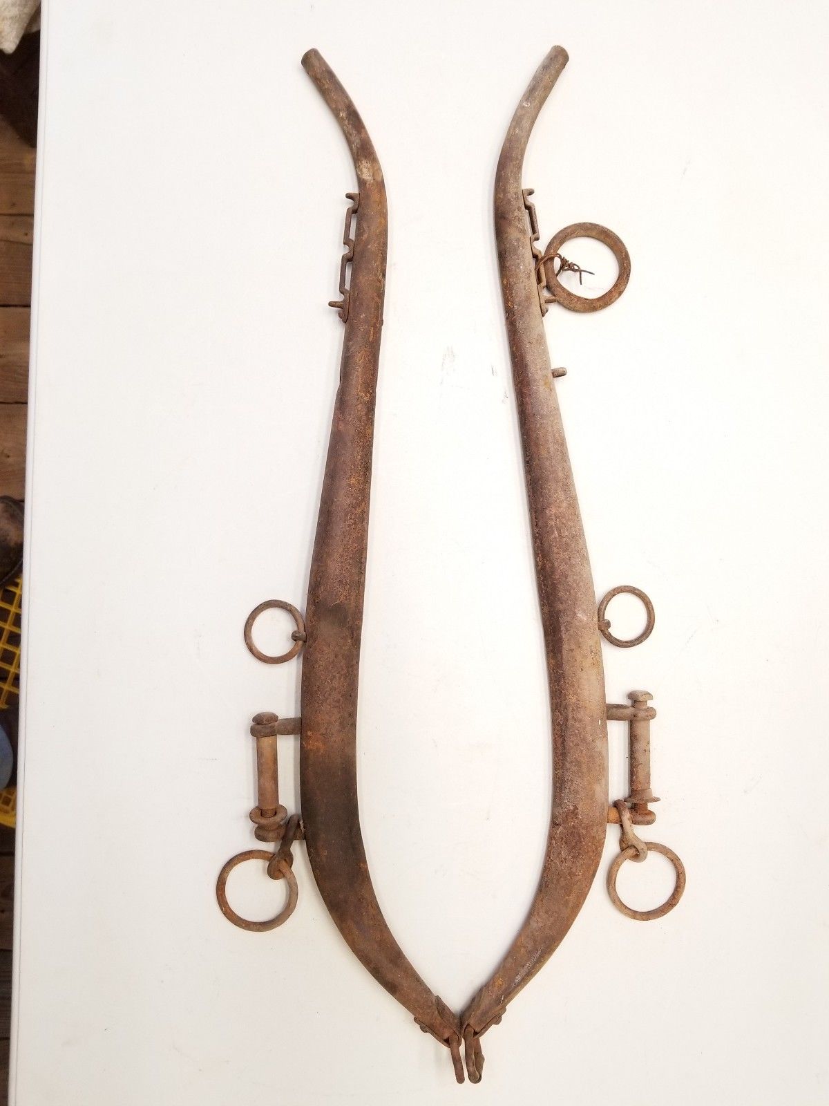 Title (ebay affiliate link): Set of Antique Iron Horse Collar Hames ~ Old Vintage Primitive Horse Drawn Tools