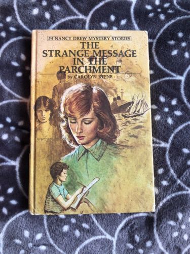 Title (ebay affiliate link): Nancy Drew #54, The Strange Message in the Parchment, Early Picture Cover