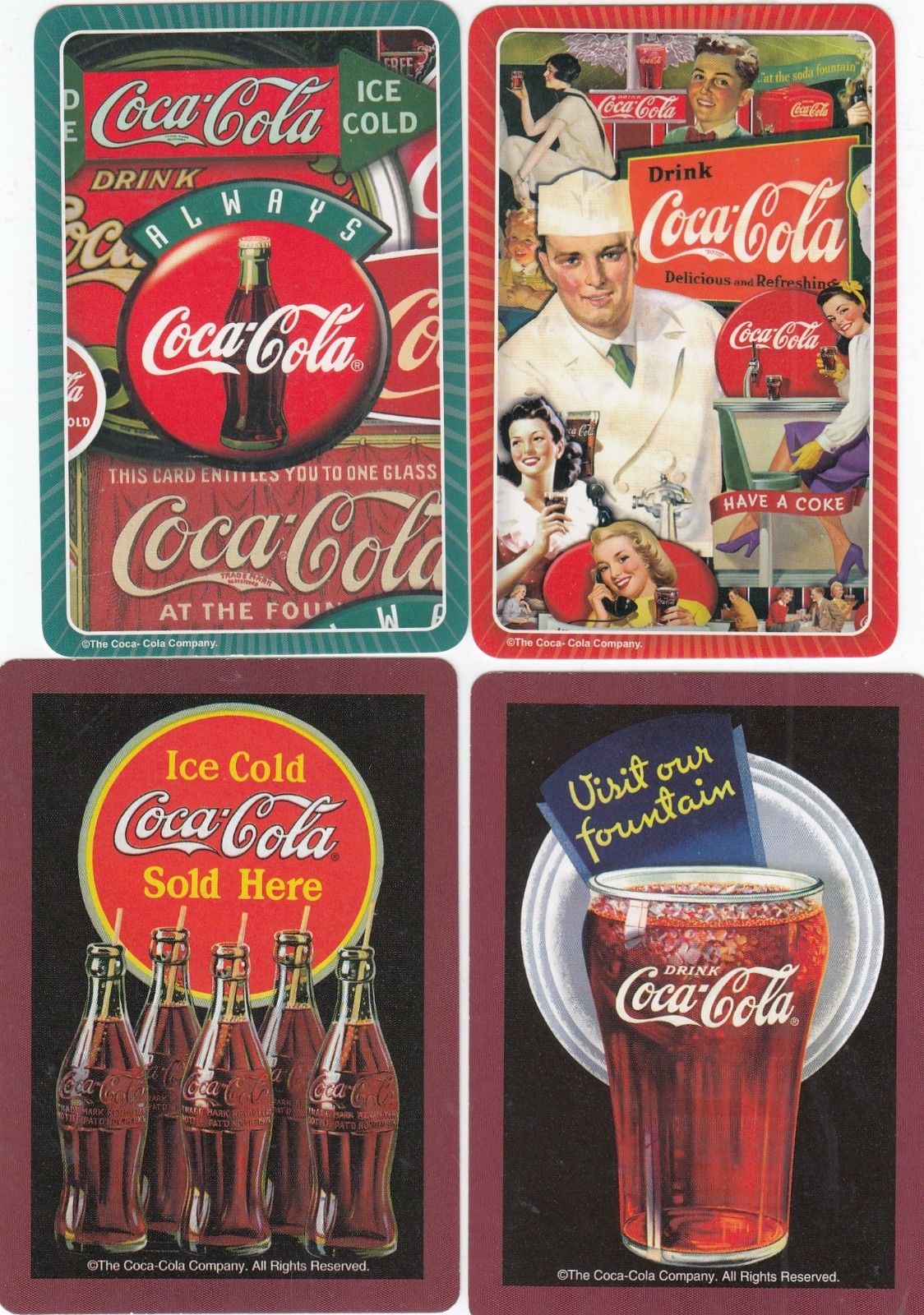 COCA-COLA -- 4 single vintage swap playing cards
