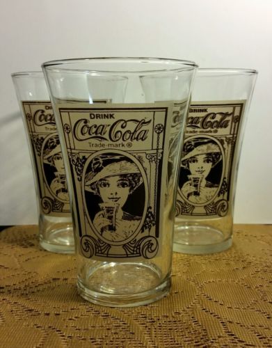 Title (ebay affiliate link): Lot of 3 Vintage Collectible Coca-Cola 16 oz Reproduction Flair Glasses-Preowned
