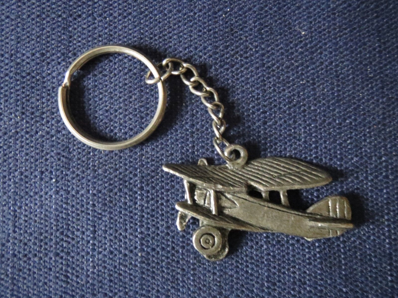 Title (ebay affiliate link): Vintage Metal Bi-Plane Key Chain Key Ring Airplane Collectible Two View Sided