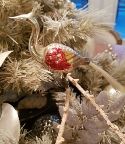 Title (ebay affiliate link): Antique German Mercury glass bird, Peacock on clip for Christmas feather tree