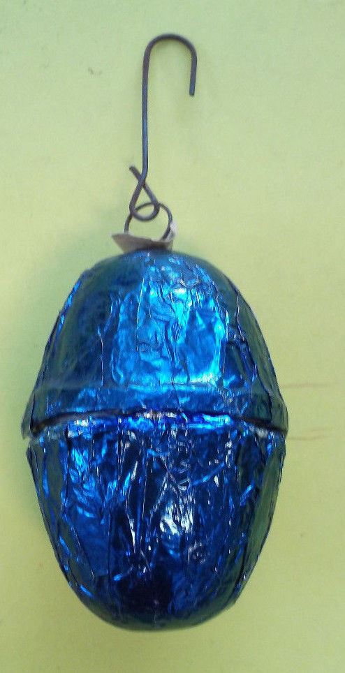 Title (ebay affiliate link): Early Vintage Foil Covered BLUE EGG Candy Container Christmas Tree Ornament