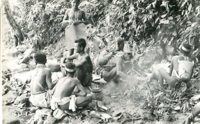 original postcard Native men preparing food Cameron Highland Sarawak Malaysia