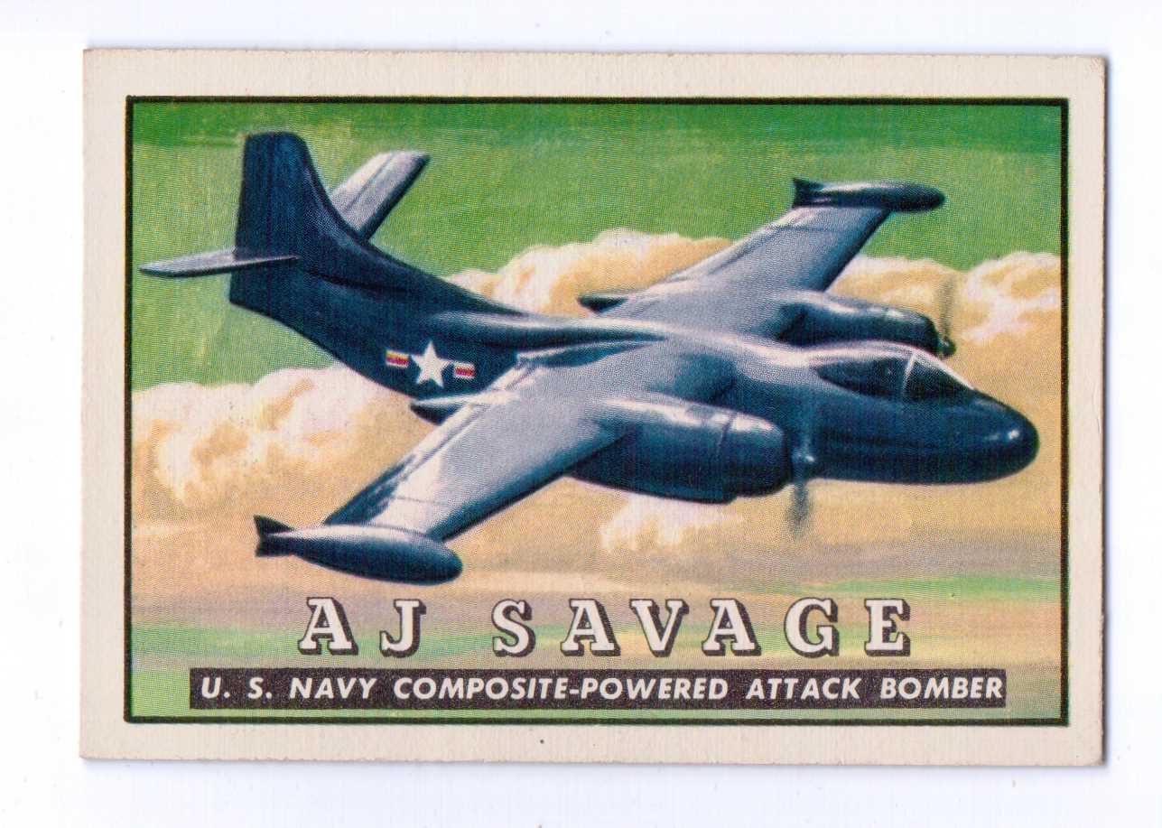 Title (ebay affiliate link): 1952 TOPPS FRIEND OR FOE WINGS #44 AJ SAVAGE BOMBER EXNM