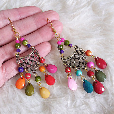 Title (ebay affiliate link): Vintage Bohemian Hippies Antique Color Multi Color Beads Dangle Hook Earrings