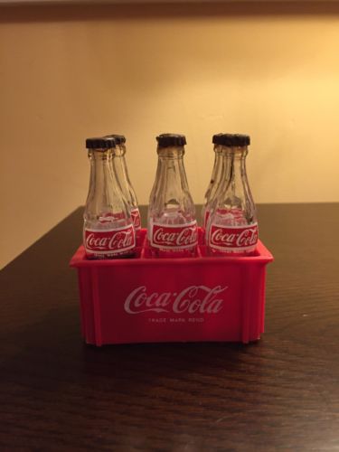 Title (ebay affiliate link): RARE RETIRED ORIGINAL 6 Mini Coca Cola Glass Bottles and Plastic Tray