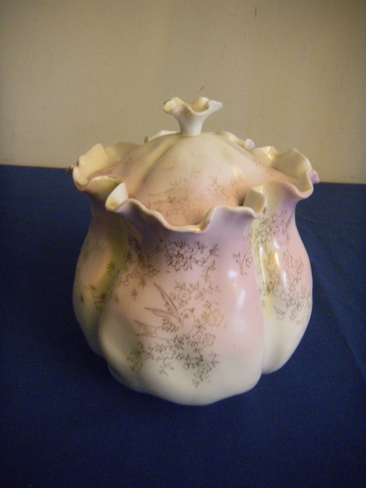 Antique Vintage Hand Painted Pink Floral Pottery Biscuit Barrel Jar
