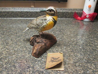 Hand Craved Wooden Nebraska western Meadowlark Bird Hai Feng